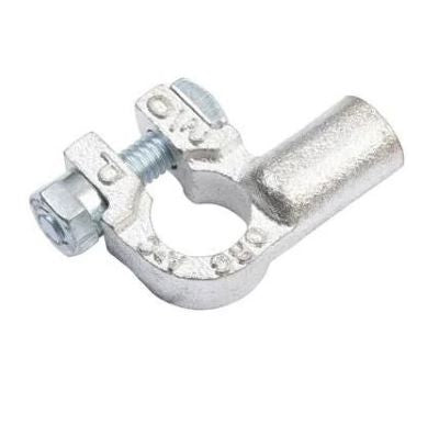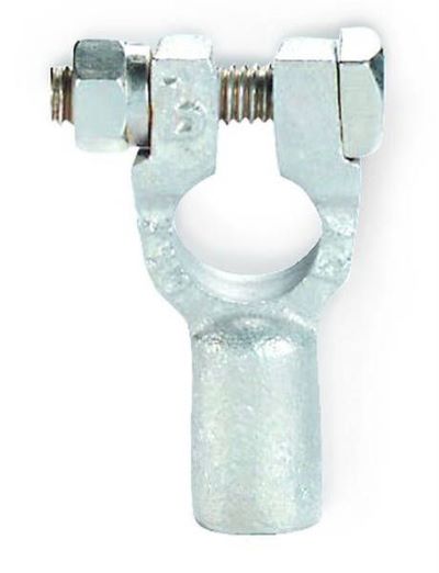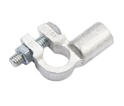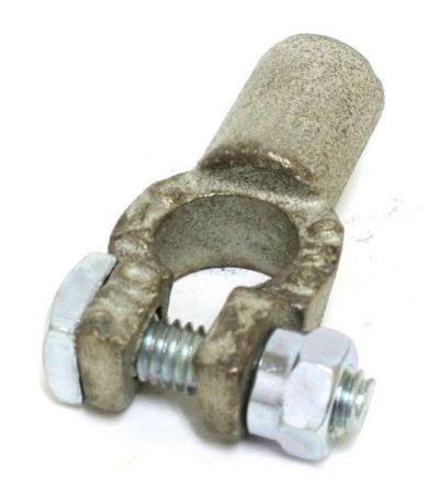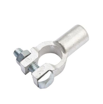 Copper battery terminals offer the highest degree of electrical conductivity, provide a high degree of strength, and can be easily soldered or crimped using the proper tools. Constructed from die-cast copper and tin plated, our copper battery terminals will fit cable sizes ranging from 6 gauge to 4/0 gauge battery cable. These terminals come in four different configurations: Straight barrel, right angle, left angle, and parallel, which are used to connect multi-batteries together in battery bank systems. Battery terminals come in either positive or negative polarity for use with either the positive post or negative post of your battery. Smaller gauge terminals are universal and the same terminal can be used with either the'+' or '-' side of your battery. Each terminal is marked with it's polarity as well as it's gauge size. Includes 5/16" bolt and nut. Copper battery terminals are an excellent choice for reliable higher current electrical systems.
