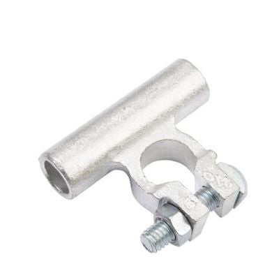 Parallel battery terminals are used for connecting multiple batteries together in a series or parallel configuration. Parallel battery terminals are made from pure copper to provide the maximum in conductivity and are tin plated to prevent corrosion and making them easier to solder. Cable gauge size and polarity are marked on the terminals for easy identification. These parallel battery terminals are for use with either 1/0 awg or 2/0 awg battery cable. They can be crimped using our hammer battery terminal crimper, or they can be soldered. Our solder slugs provide a convenient way to solder these battery terminals since they provide the optimum amount of solder and flux required in a single pellet. Battery terminals include mounting bolt and nut for attaching the terminals to the top posts of your automotive or marine batteries.