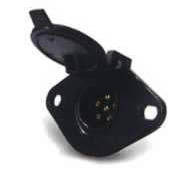 Trailer connectors are heavy duty connectors that are designed for rugged outdoor use and can carry larger amounts of current for running electrical circuits on trailers such as lights and accessories. Trailer connectors are available in 1 position through 7 position configurations. The connector housings are made from either die-cast aluminum, brass, or molded nylon. Easy attachment of wires through screw terminal connections. Trailer connectors meet or exceed OEM and SAE standards for trailer wiring.