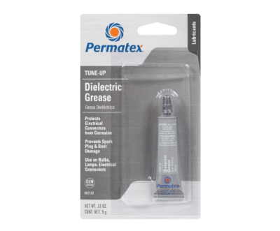 Di-electric grease is used to protect electrical connections from moisture and corrosion. the grease repels water, while acting as an insulator. Other electrical chemicals, such as battery terminal cleaner spray, quickly and easily removes corrosion buidup on battery terminals.