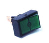 Two position single pole, single throw illuminated rocker switches with black nylon housing. Options of Illuminated or non illuminated 'ON' position with three, 1/4" male blade terminals.